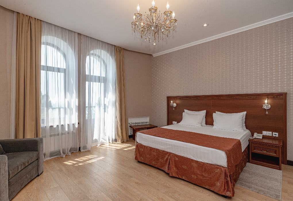 Площадь номера - 15,6-32,8 кв.м. 1 комната. 2 осн. места. располагаются на 2 и 3 этаже, вид на море. В номере: телевизор; кондиционер; душ; фен; сейф; пляжное полотенце; 1-спальные/ 2-спальная кровать; мини-холодильник; чайник; санузел; чайный набор. 1 доп. место: