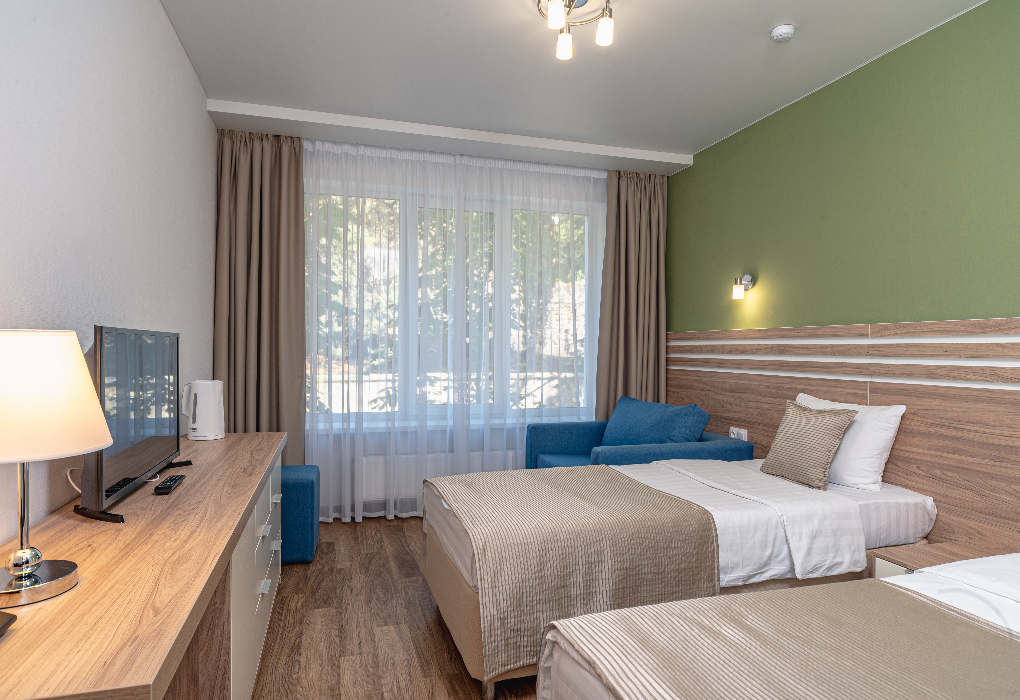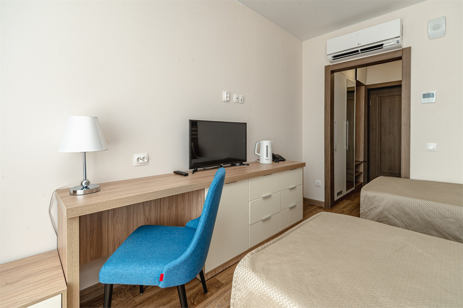 Площадь номера - 13,3-17,1 кв.м. 1 комната. 2 осн. места. располагаются на 1 этаже, вид на парк. В номере: телевизор; кондиционер; душ; фен; сейф; пляжное полотенце; 1-спальные кровати; мини-холодильник; чайник; санузел; чайный набор. 1 доп. место: