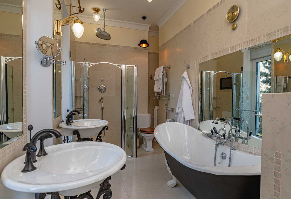 Площадь номера - 360 кв.м. 4 комнаты. 4 осн. места. Пятиэтажная вилла по мотивам итальянского неоклассицизма расположена в парке курорта на территории реликтовой можжевеловой рощи. Имеется собственный дворик и беседка.