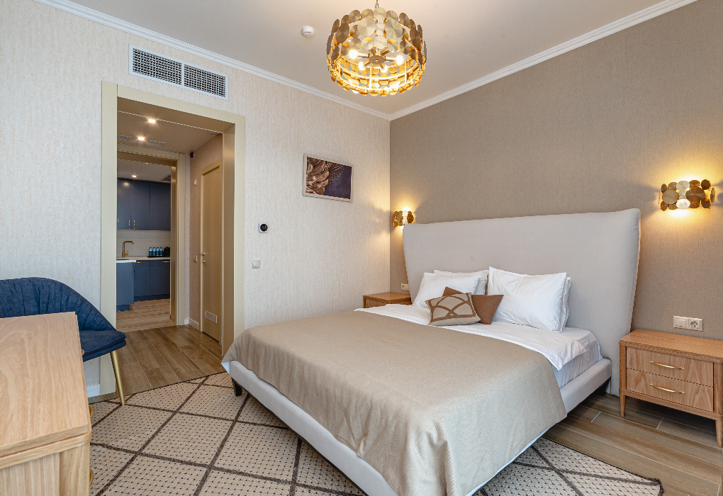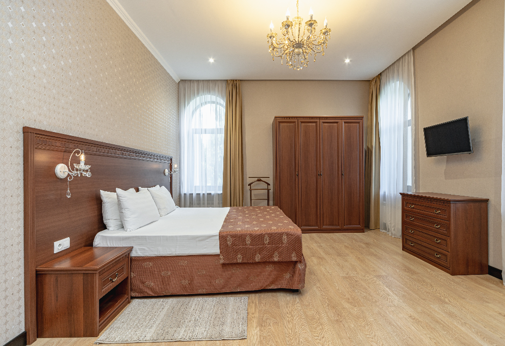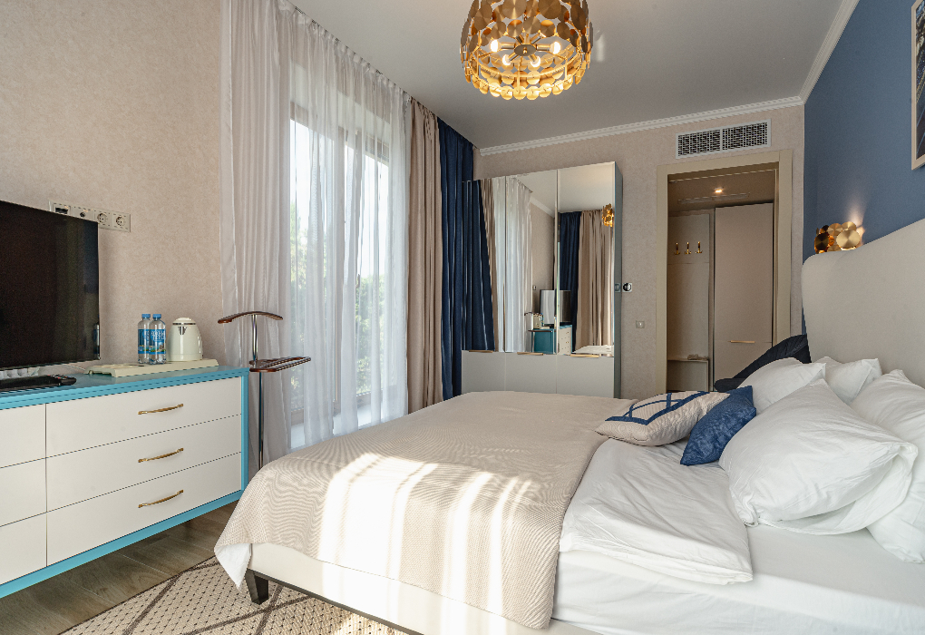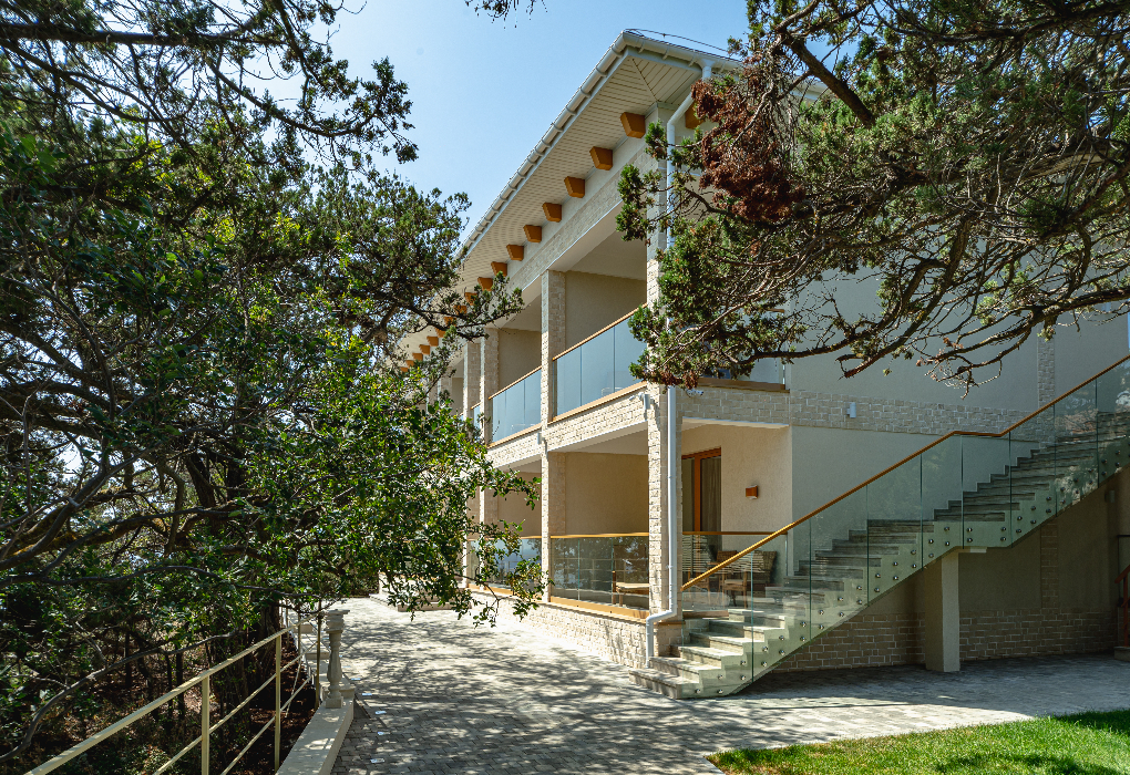 Площадь номера - 360 кв.м. 4 комнаты. 4 осн. места. Пятиэтажная вилла по мотивам итальянского неоклассицизма расположена в парке курорта на территории реликтовой можжевеловой рощи. Имеется собственный дворик и беседка.